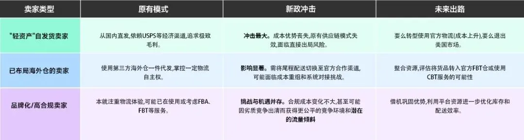 与此同时,此次洗牌对不同经营模式的卖家将产生截然不同的影响: