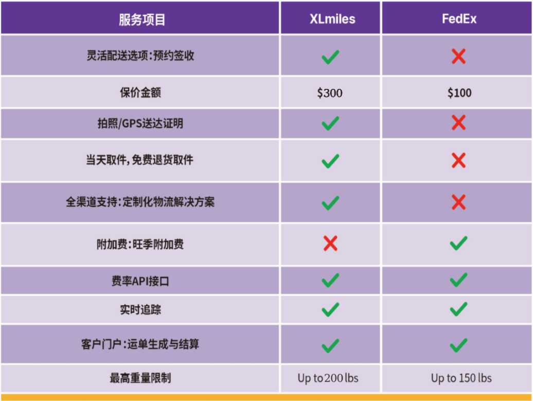 高于行业的保价金额:XLmiles提供了比FedEx更高的保价金额。FedEx的保价金额通常是100美元,而XLmiles给客户提供的保价金额达到300美元,为高价值大件商品提供了更全面的保障,让客户能够安心售卖。