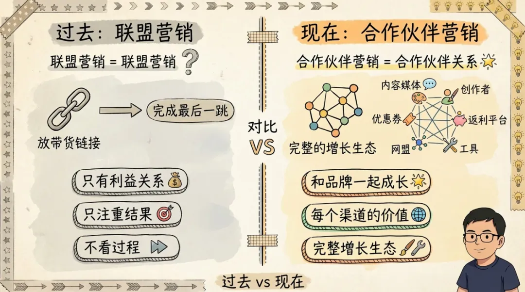 现在:合作伙伴营销 = 内容媒体 + 创作者 + 优惠券 + 返利平台 + 网盟+工具……构成的完整的增长生态。