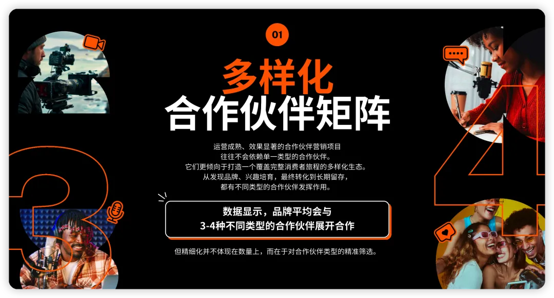 这点,我在Impact最新的重磅报告:「全球合作伙伴营销洞察报告 」(文末有下载链接)里面看到:品牌平均合作 3–4 类伙伴,高增长品牌在社交达人、内容测评、Commerce Solutions 与Sub Network上加大投入.