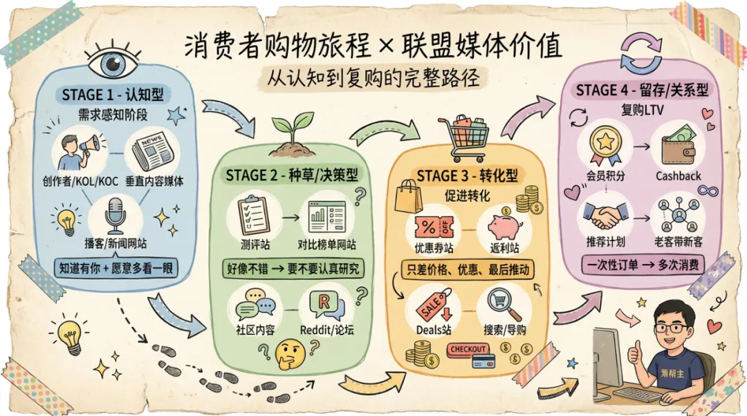 如果在这个链路里,你只把“最后下单”当作联盟营销,那基本可以确定: