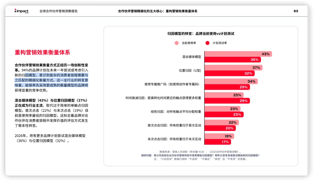 不过我也看到Impact「全球合作伙伴营销洞察报告」里面也有提到2026年有新的品牌愿意牌计划尝试混合媒体模型 (36%)与位置归因模型(32%)。