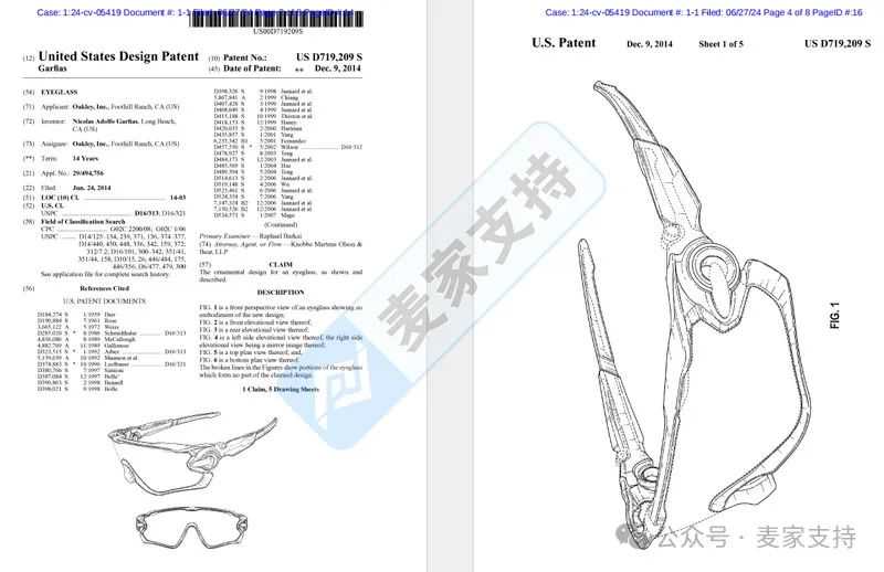24-cv-05419,GBC律所代理Oakley欧克利专利维权再度来袭