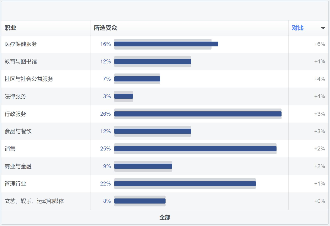 · 职业:根据用户在 Facebook 上的自报信息得出的用户可能从事的行业。