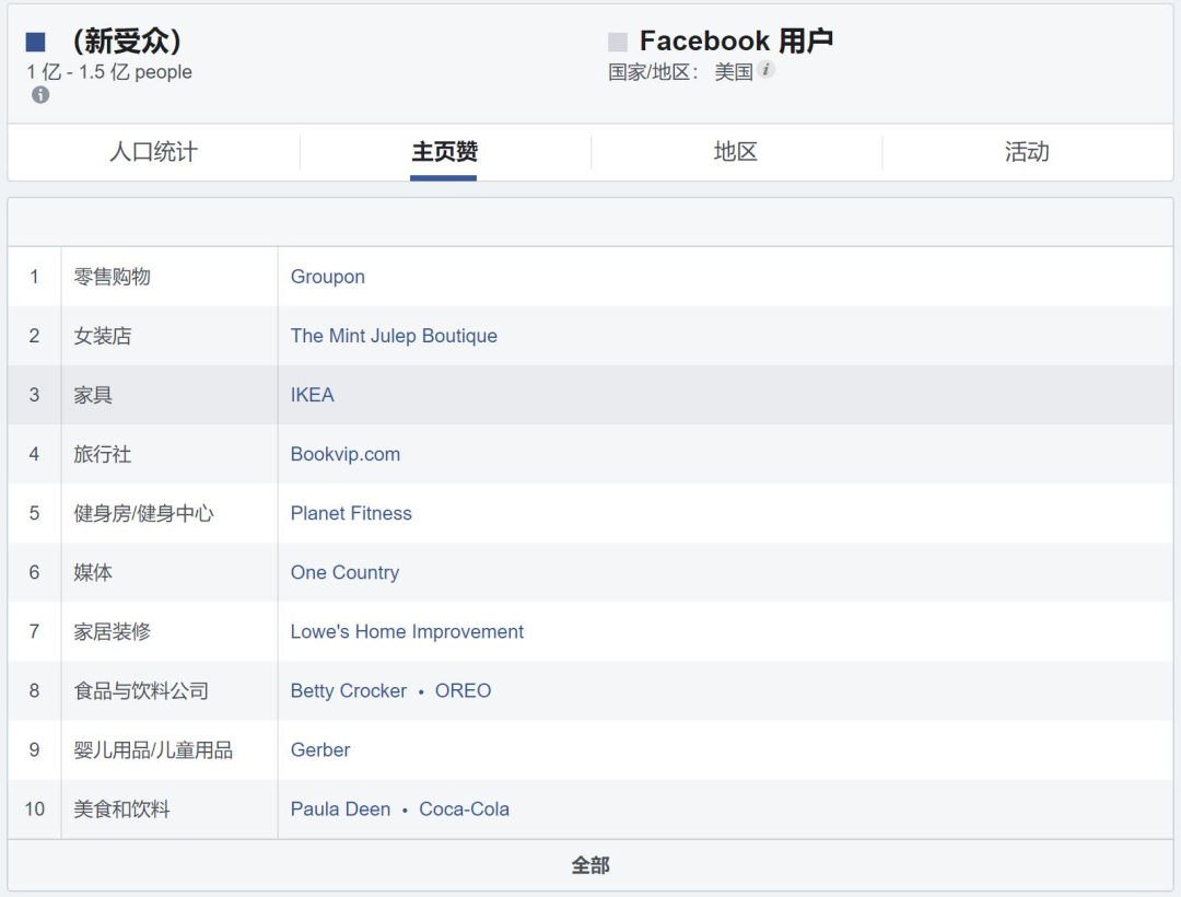 主页赞根据 Facebook 公共主页获赞的情况,显示可能与您的受众相关的主页。