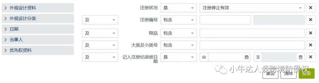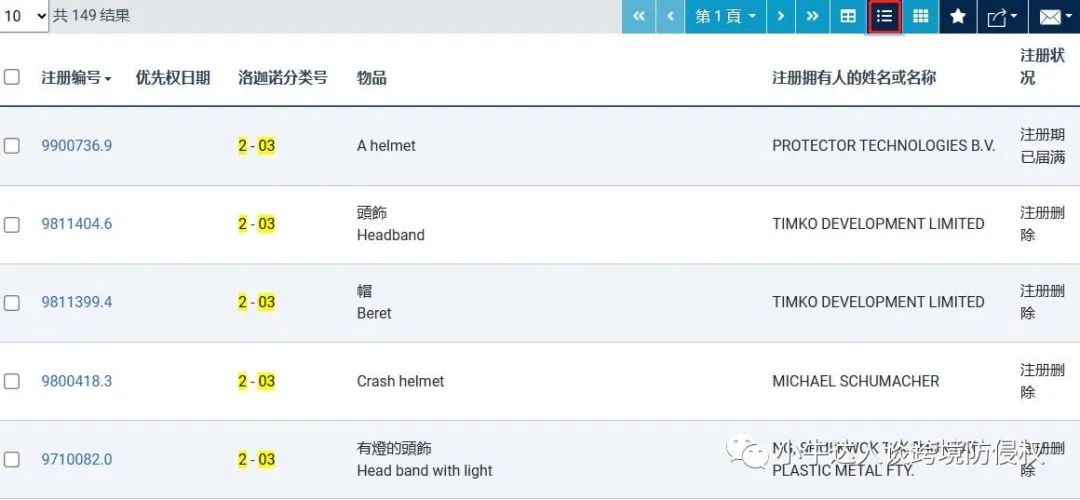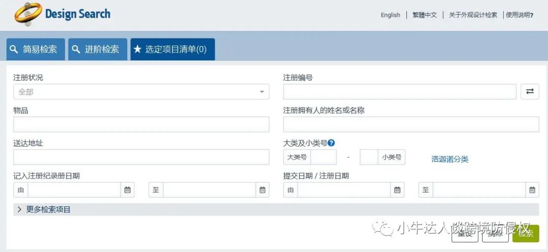 ②“基本资料”显示每项外观设计的注册编号,优先权日期,洛迦诺分类号,物品(名称),注册拥有人姓名和名称,注册状况。