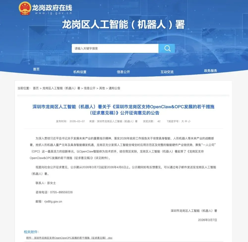 3月7日,深圳龙岗区火速出台“龙虾十条”征求意见稿,提出免费提供OpenClaw部署服务;对贡献核心代码、开发技能包、结合具身智能设备应用的项目,给予最高200万元补贴;每年还会评选示范应用项目,按实际投入30%给予最高100万元奖励。紧接着,无锡高新区也发布了12条支持政策。政府这边已经在押注。