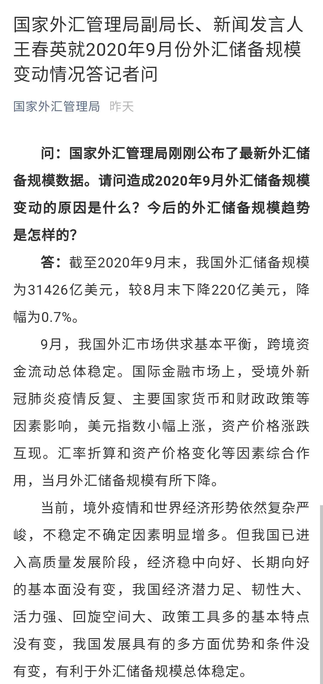 就在昨日,外汇局发布外储数据,由于汇率等综合因素影响,9月份外储规模结束五连升,小幅下降0.7%。