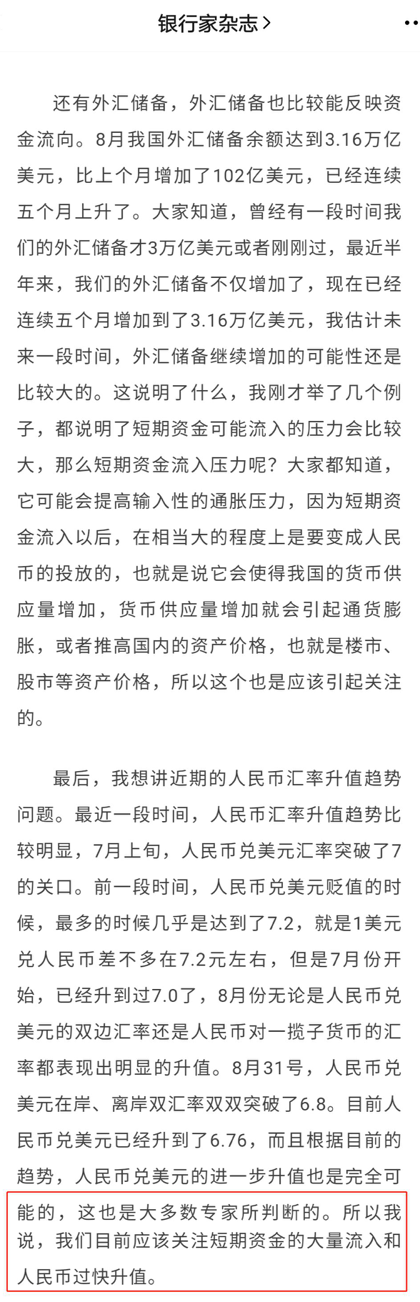 节前,上海市人民政府参事、中国人民银行调查统计司原司长盛松成就已提及“目前应关注短期资金大量流入和人民币过快增值”