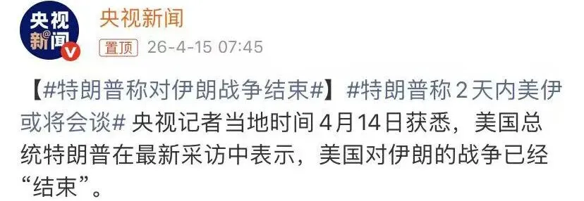 特朗普14日在接受媒体采访时表示,美国对伊朗的战争“已经结束”,尽管正式的停火协议未在判桌上达成,但他认为战事已进入尾声。未来48小时内双方可能重启新一轮磋商,核心议题将围绕核计划及相关赔偿展开。