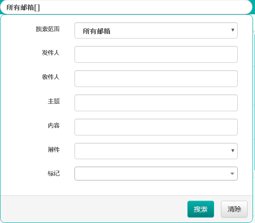 点击搜索框可以根据不同的条件进行搜索,比如有搜索范围,收发件人,主题或邮件内容,邮件是否带有附件,以及标记来进行搜索。