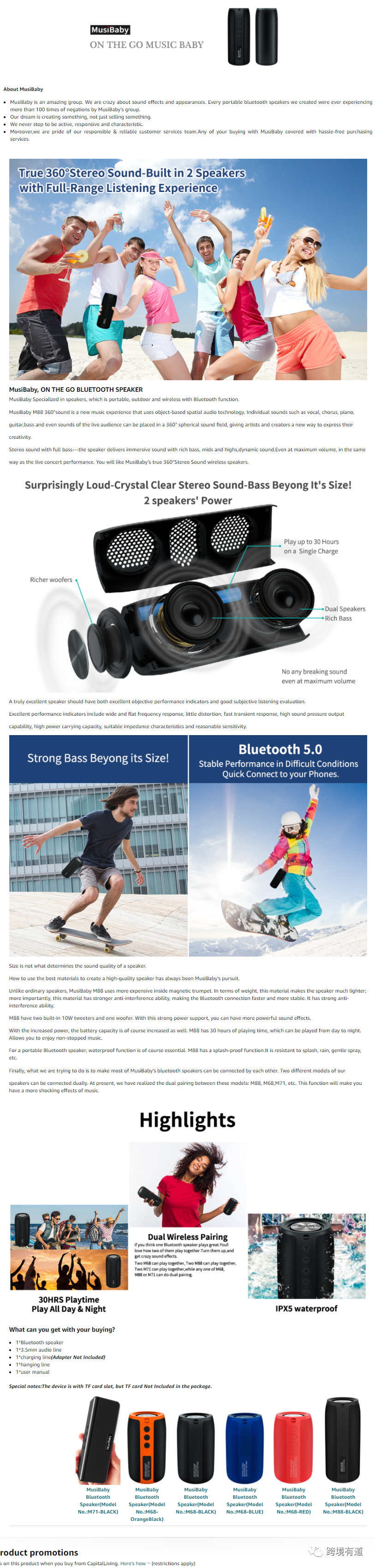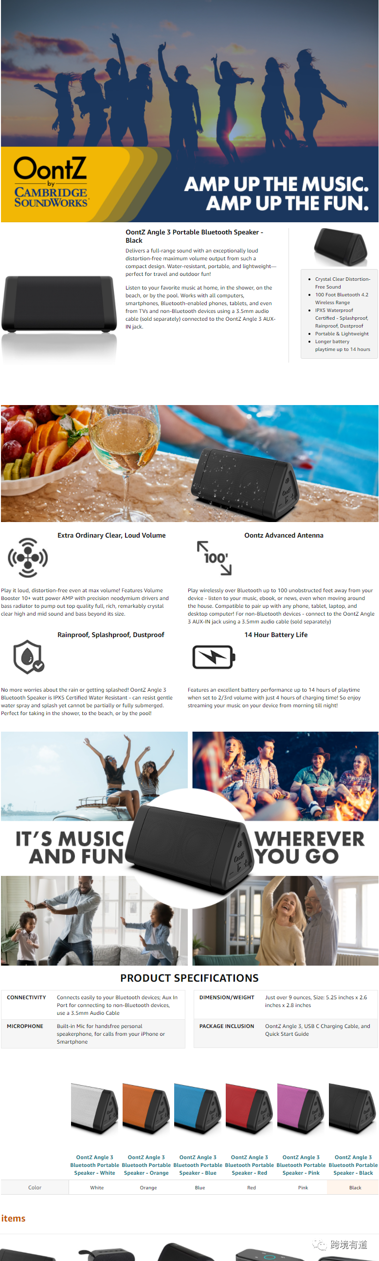 例如:下图中的OontZ只用了一句广告语“AMZ UP THE MUSIC. AMZ UP THE FUN.”,并无大篇幅的描述品牌故事内容,就像当年的“收礼只收脑白金”和“一个男人一生只能买一枚DR”一样,都是直击人心,能够让人记住。