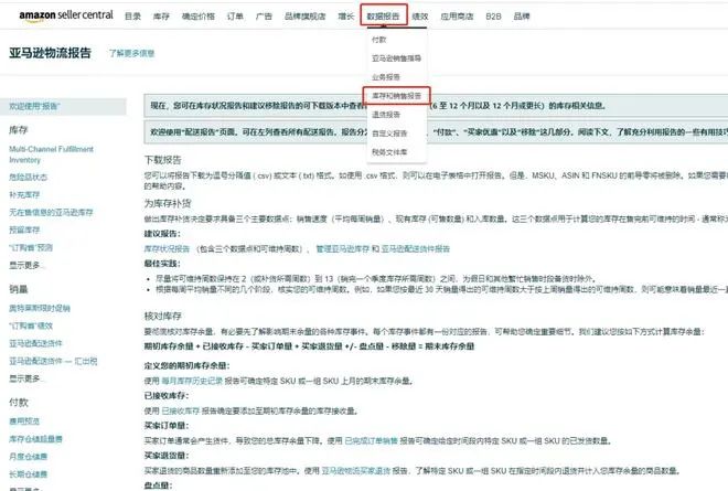 1.打开亚马逊后台-【数据报告】-【库存和销售报告】