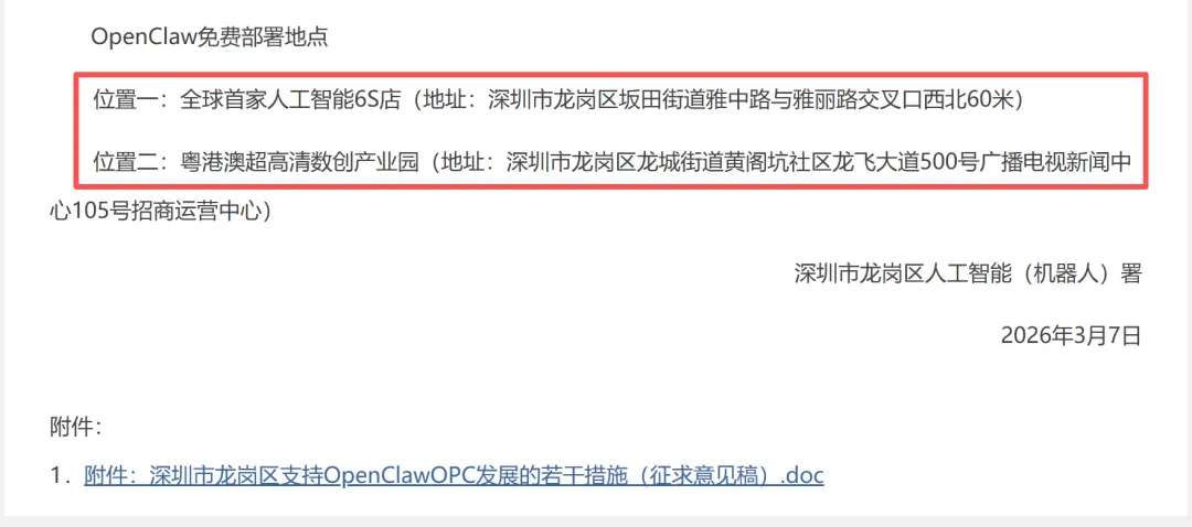 1️⃣ OpenClaw免费部署:政府支持企业建设“龙虾服务区”,提供OpenClaw部署、环境搭建和技术支持,降低AI创业的技术门槛。