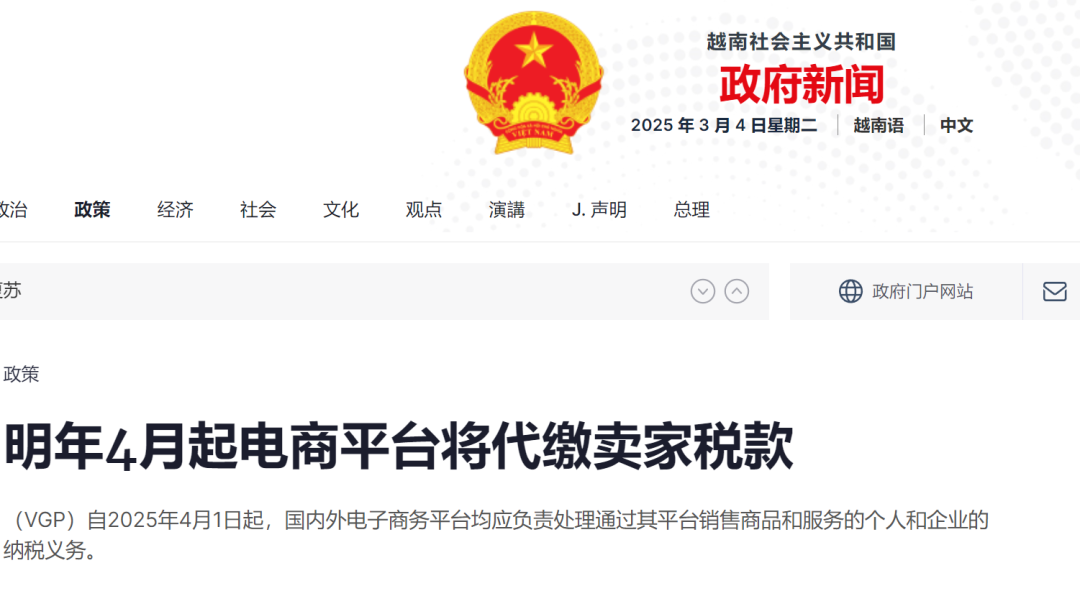 近日,越南一项旨在规范税收征管、促进市场健康发展的新政策正式落地。该政策作为2024年11月29日国会通过的《税收管理法》修正案的一部分,自 2025 年 4 月 1 日(当地时间)起生效,对电商平台卖家的经营活动产生了一定影响。