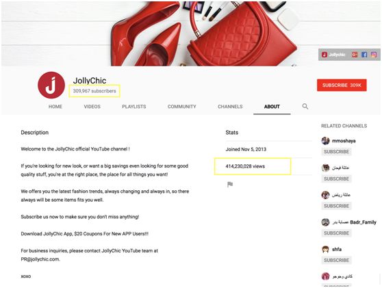 YouTube在中东地区拥有非常高的覆盖率,这也是Jollychic选择YouTube进行品牌传播的重要原因之一。