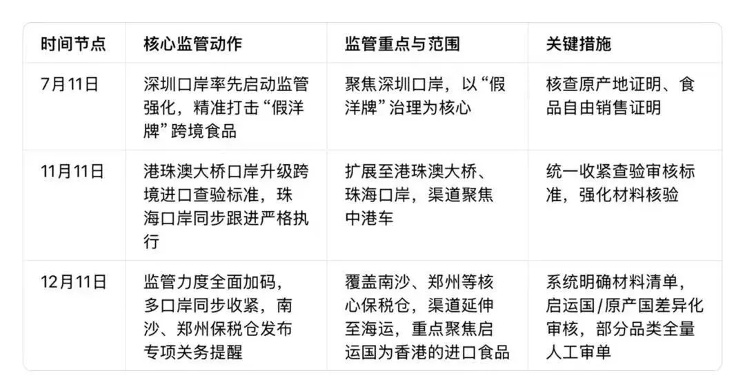 此次监管升级并非突发,结合2025年全年监管动态可清晰梳理出政策收紧脉络,跨境进口食品监管升级核心时间线如下: