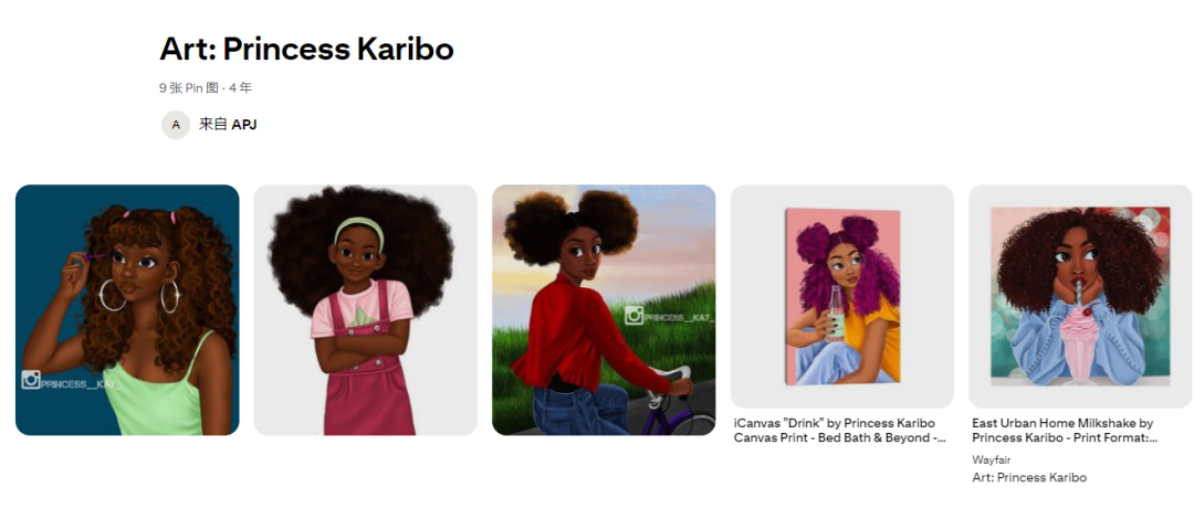 Princess Karibo 的画作“黑人女孩”形象鲜明,有较强艺术辨识度。若卖家在产品上印刷类似图案,很有可能触发版权侵权甚至被发起 TRO 起诉/平台投诉。我们建议涉及这类带 “Black Girl”、“Afro”、“黑人女性”元素的艺术图案的商品,卖家一定要仔细核实版权与授权情况。