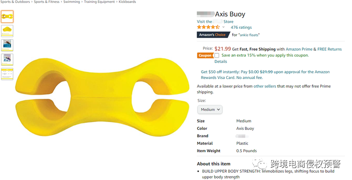 下面这款游泳夹腿板,目前是亚马逊美国站的Amazon'sChoice,现有留评数476,售价为21.99美金: