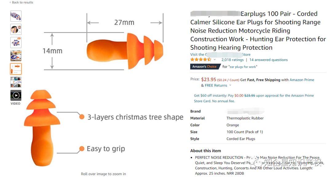 今天在浏览亚马逊的时候,看到一款降噪耳塞,它是美亚站的Amazon'sChoice,售价23.95美金,留评2032颗星。