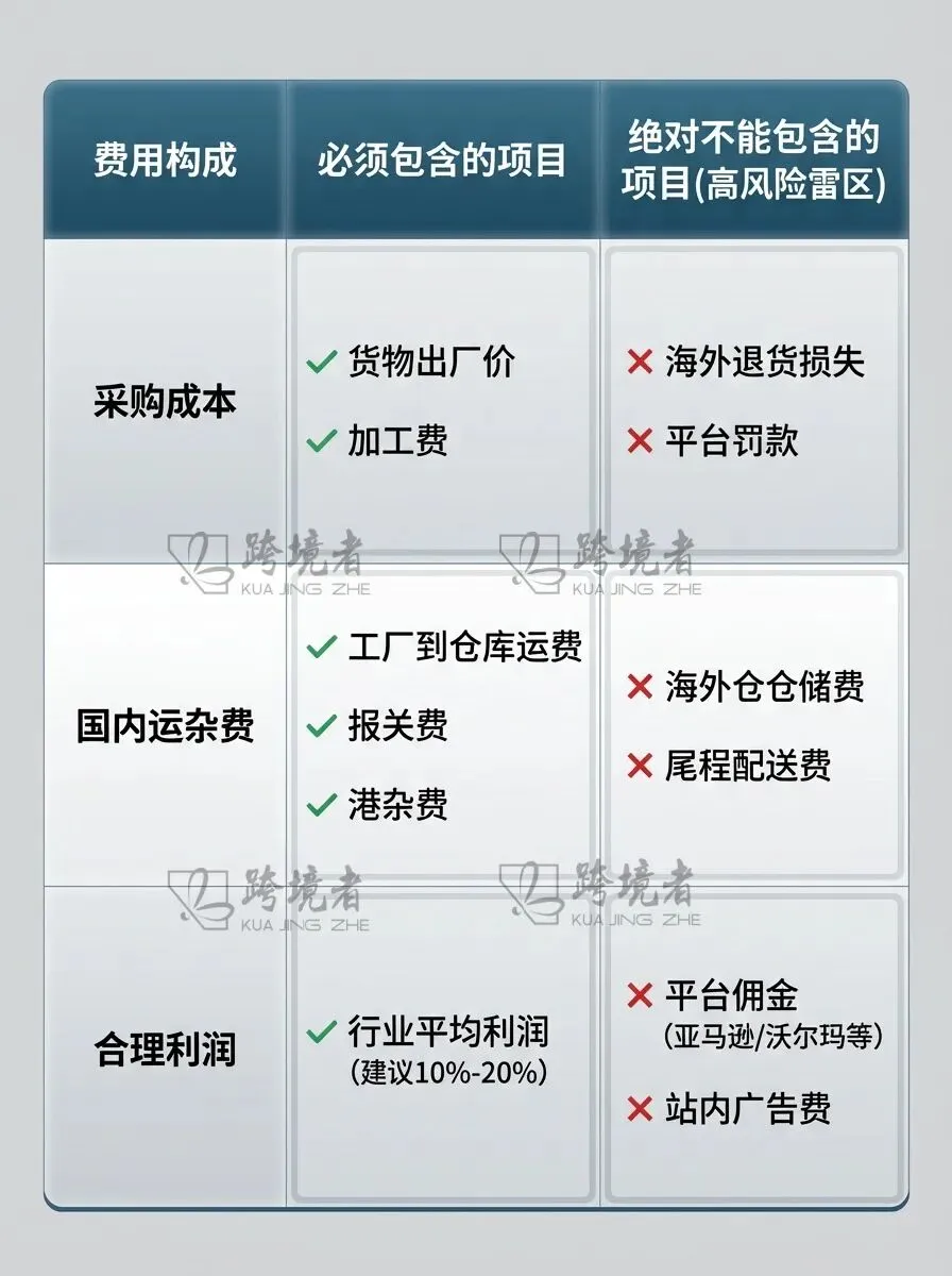 话术模板: “销售价 = 海关申报价 + 海外仓费 + 平台佣金 + 尾程运费”。