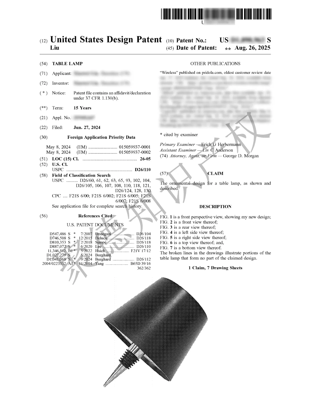 以及一款起诉多次的台灯设计