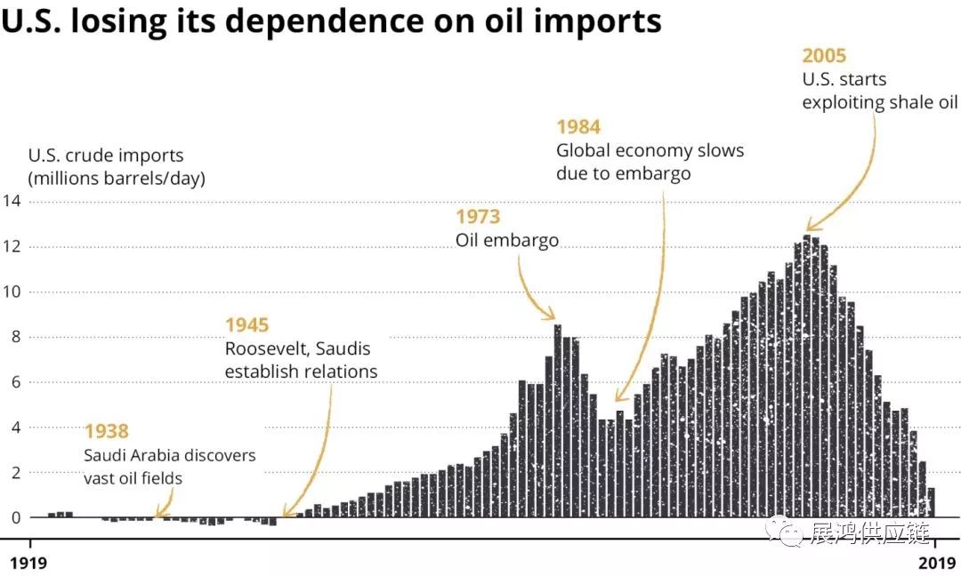 沙特关上石油龙头时的油价越高(或者如果发生超出美国控制的情况),从美国那里买来它自己从页岩中生产的石油的费用就越高。大部分开采在德克萨斯州的二叠纪盆地进行,这儿已经成为世界石油调控者 ,而该角色先前是由沙特扮演的。