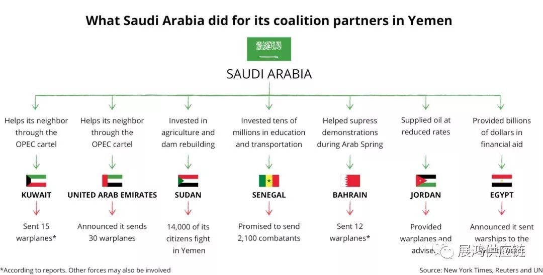 这些国家包括已经享受数十亿美元投资的黎巴嫩,以及在经济上依赖利雅得的埃及。部分清单还包括约旦,苏丹,巴基斯坦,菲律宾和摩洛哥。沙特还雇佣了数百万来自阿拉伯和亚洲国家的工人。