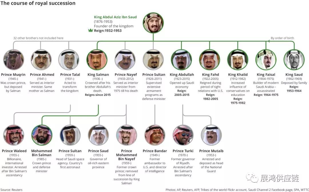 从1932年至今的沙特国王,图源:美联社,路透社,沙特官方新闻社