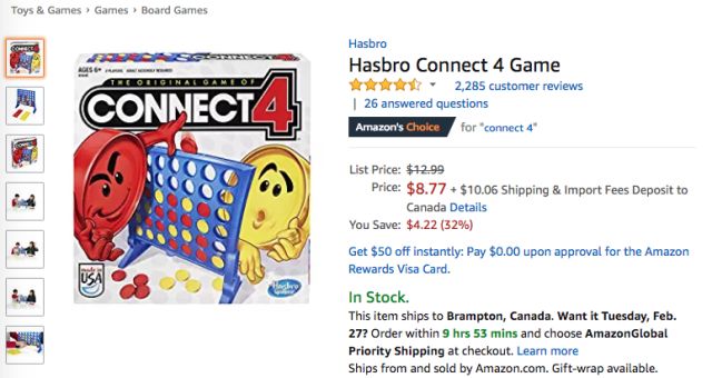 品牌Hasbro的四子棋盘游戏,连续四天进入榜单前十,以平均排名9.71的位列综合排名第五。