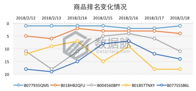 根据上周 BestSeller 榜单上商品的登榜次数及平均排名,骆探长对登榜的商品进行了排序,其中排名靠前的五款商品如下所示: