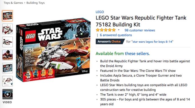 品牌Lego的星球大战坦克建筑套件以平均排名73.5位列综合排名第五,其单日最大涨幅为50.0%。