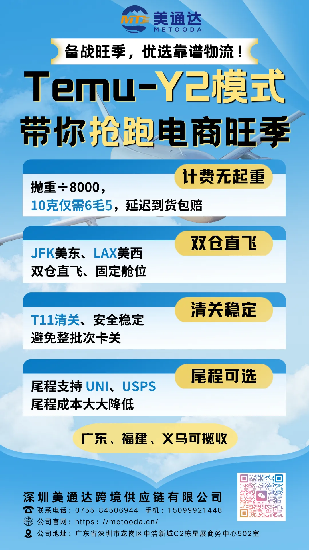 ▲点击上图跳转至美通达TEMU—Y2专线介绍▲