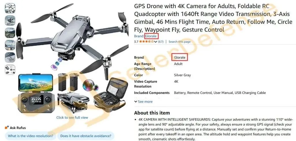 原告品牌:Glorale 无人机