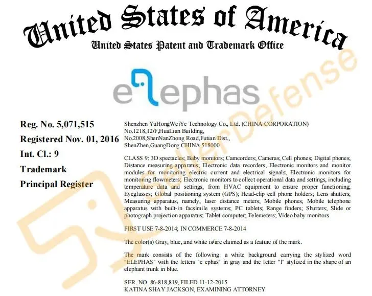 原告品牌:ELEPHAS 投影仪