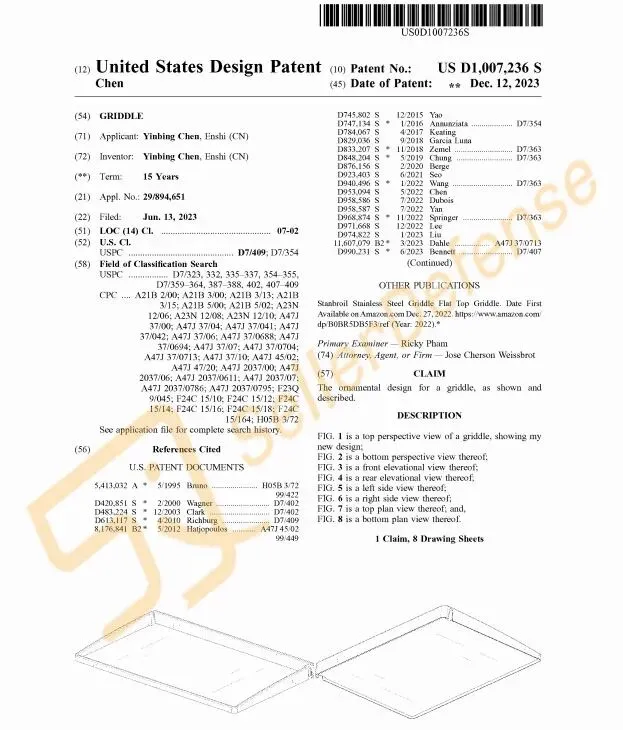 本案为国人原告,案件涉及专利产品是一款烤盘保护罩,采用全边设计和高侧边,即使在暴风雨天气也能有效防止啮齿动物、昆虫、灰尘、碎屑和锈蚀。能有效保护烧烤烤盘保持其良好状态,延长使用寿命,使其随时可用。