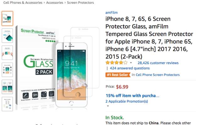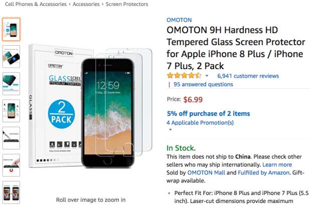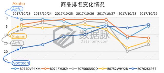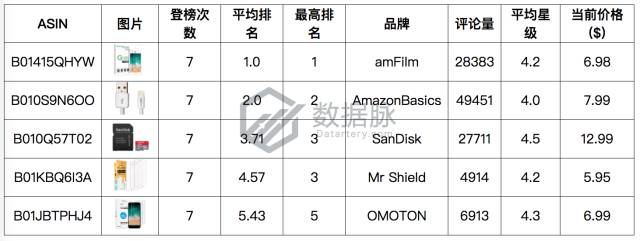 此外骆探长(shujumai.com)发现,一款 品牌为OMOTON的iPhone 7/8 plus屏幕保护膜也从上周激烈的榜单竞争中脱颖而出,在一周中6次跻身Best Sellers榜单前五,平均排名5.43,位列综合排名第五。