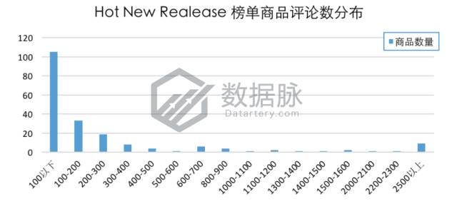 在上周登榜Cell Phones & Accessories品类 Hot New Releases 榜单的商品中,单个商品拥有的最大评论数为8075.0,最小评论数为0.0条,平均评论数563.41条,评论平均星级4.4星。骆探长(shujumai.com)发 现,其中大部分的商品评论数在100条以下,占比50.97%,另有16.02%的商品评论数在100条到200条之间。此外,上周共有9款上榜商品拥有的买 家评论数超过了2500条,占上榜商品总数的4.37%。