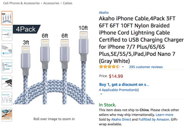 另有一款来自品牌Akaho的手机数据线产品同样发挥出色,在10月25日、 26日、27日三天中连续占领Hot New Releases榜单榜首,夺得4.57的平均排名。