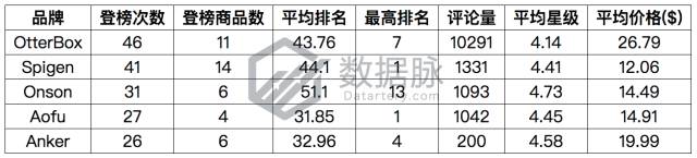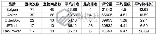 同时SanDisk内存卡与Mr Shield的手机屏保护膜也继续保持了稳定的榜单发挥,分别以3.71与4.57平均排名位列综合排名的第三第四位。