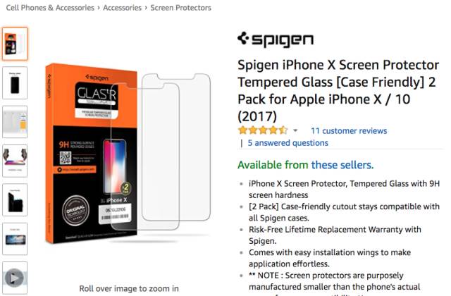 可以看到,在上周Cell Phones & Accessories品类的Movers & Shakers榜单中,两款来自品牌Spigen的iPhone X相关手机产品涨幅惊人——其中该品牌的一款iPhone X钢化玻璃保护膜产品自10月23日起连续六天杀入榜单,BSR单日最大涨幅达1333.0%,以平均排名38.83的成绩位列综合排名首位;