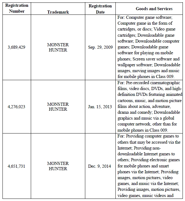 TME律所代理Capcom Co., Ltd.公司旗下《怪物猎人》游戏多个版权+商标进行维权