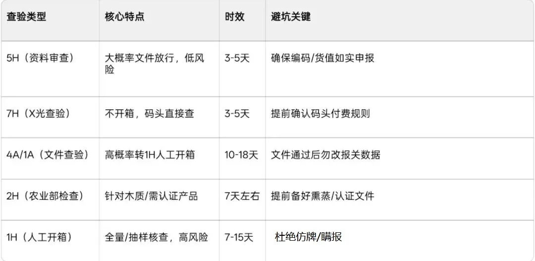 美国海关查验详解,5H/7H/1H等类型区分+实操流程