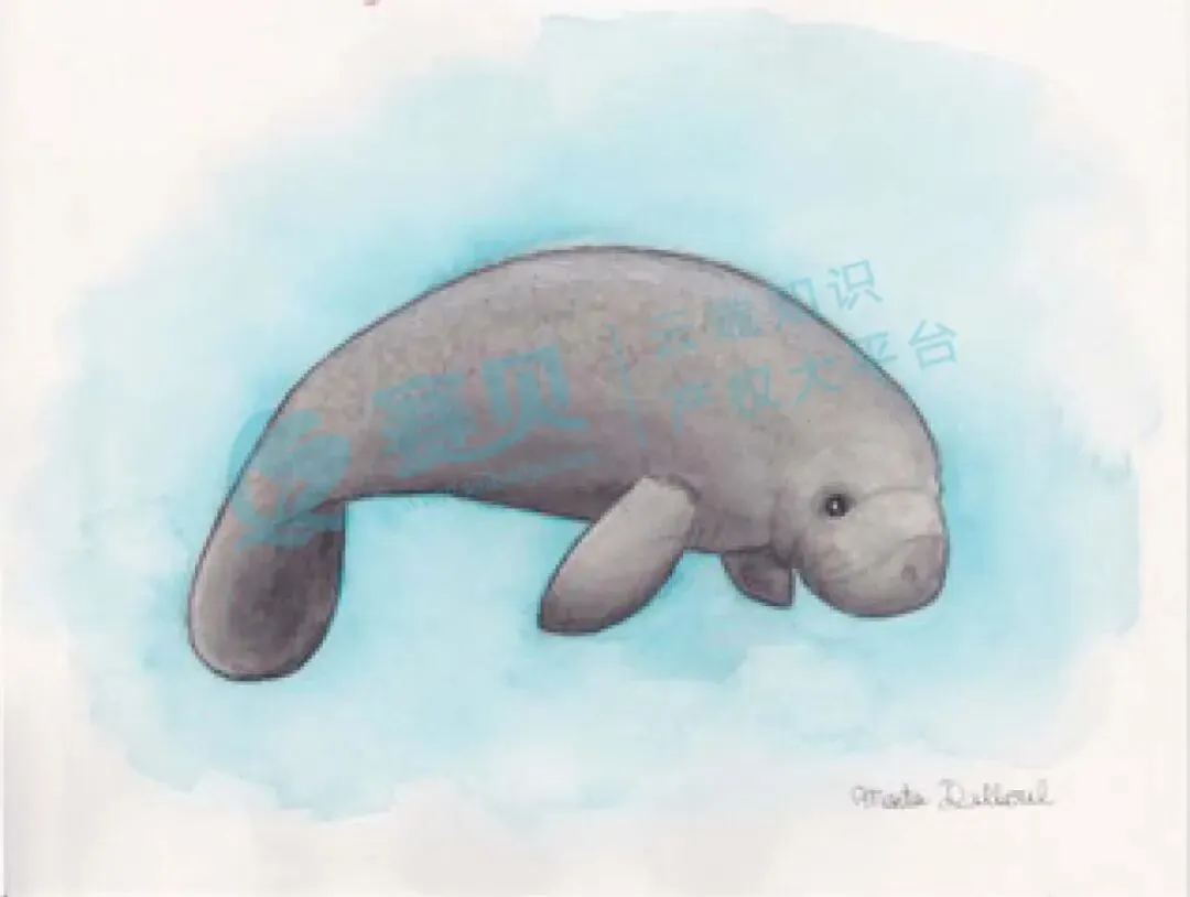 这次维权的是一款名为 “Manatee(海牛)” 的插画,美国版权注册号 VA 2-458-668,如果是把这只海牛印在儿童床单上,或者截一部分做装饰画,哪怕把海牛颜色改成蓝色,只要能看出源自这款插画,都可能涉及侵权。
