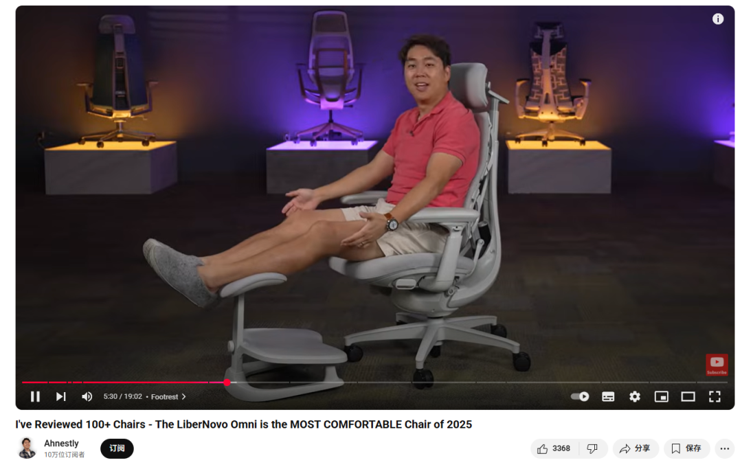 计算机设备发烧友博主 @DanKamYouKnow 在测评中直言:“这是我用过的最佳电竞椅”,并将 LiberNovo Omni 定义为 “对健康的绝佳投资”。他重点解析了产品的核心优势:作为 “世界首款带动态支撑系统的人体工学椅”,其 Bionic FlexFit 电动腰靠能实时调整形成 S 型曲线,完美贴合脊柱以消除压力空隙;105° 深度专注、120° 创意、135° 工作 / 游戏、160° 全身减压四档模式,精准适配从高强度办公到长时间电竞的场景切换。视频中 “减少疼痛、提升能量” 的实测结论,引发大量程序员与游戏玩家共鸣。