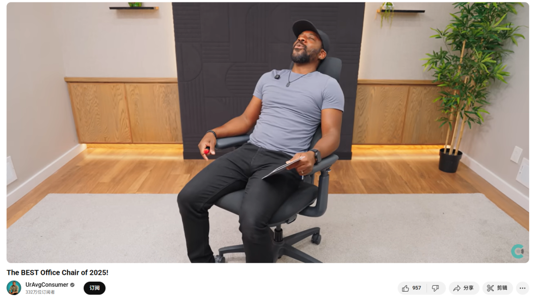 头部科技博主 @UrAvgConsumer 及其团队同样给出高度评价,称其为 “用过的最好的办公椅”。他们特别强调三层材料(弹性面料、增强型记忆海绵、自适应面板)带来的 “坐在云上” 的舒适感,动态支撑系统在 160° 后仰时的 “Omni Stretch” 功能被形容为 “不可思议”—— 腰托 5 分钟的缓慢推入与收回,灵感源于普拉提,能精准缓解下背部疲劳。尽管指出头枕阻尼需优化、扶手缺少倾斜功能等细节问题,但团队仍表示 “强烈考虑为整个工作室更换这款椅子”。