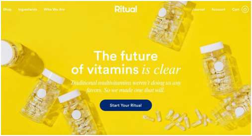 Ritual每月向用户发送一瓶每日维生素,它的网站为消费者提供各种营养补充剂的相关知识,包括何时、如何服用补充剂,以达到最佳效果。