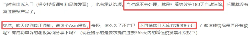 有经验的卖家表示这是典型的秋后算账,8个月前收到投诉不去处理会平台被视为“屡次违规”或“故意违规”。还有卖家表示即使绩效通知在180天后自动消失,但违规记录依然在案,当账号再次被审核时,亚马逊可能会重新评估所有未彻底解决的历史问题。