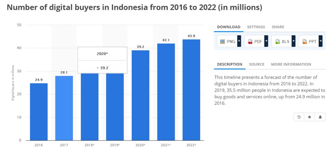数据显示,2016年印度尼西亚的在线购物者为2490万,预计到2020年,就将有3920万印度尼西亚人在线购买商品和服务。