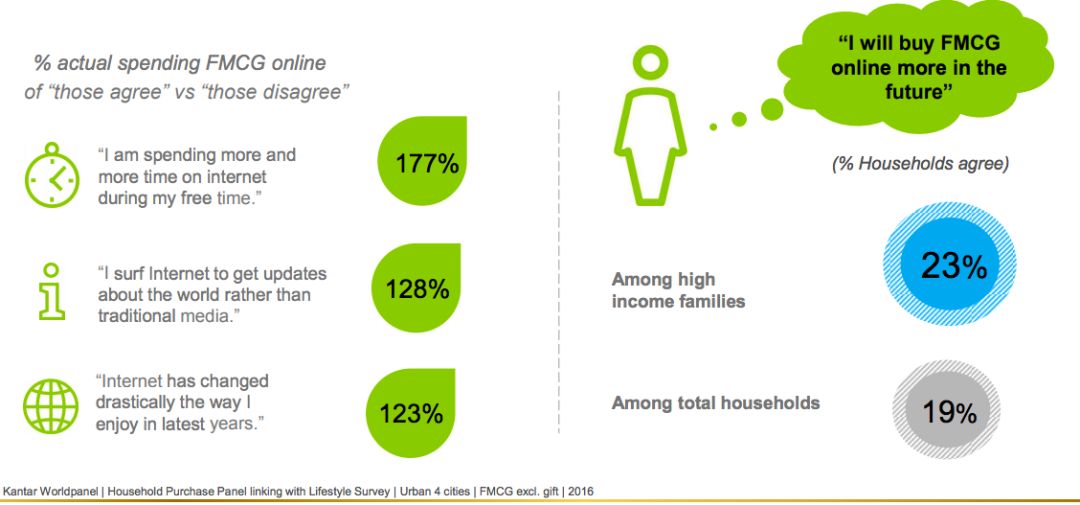 据 Kantar Worldpanel 发布的白皮书,在越南,有177%的人在闲暇时间会浏览互联网页面。此外,在2016年的时候,越南有6%的城市家庭在网上购买快速消费品,并且比线下购买时多花3-4倍,而到了2017年,越南已经有23%的高收入家庭计划更频繁地在网上购物,因为他们能够负担得起电子商务的便利性。